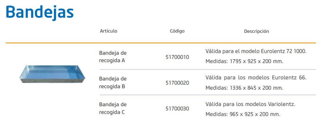 Bandeja de recogida B para Eurolentz 66 Rikutec