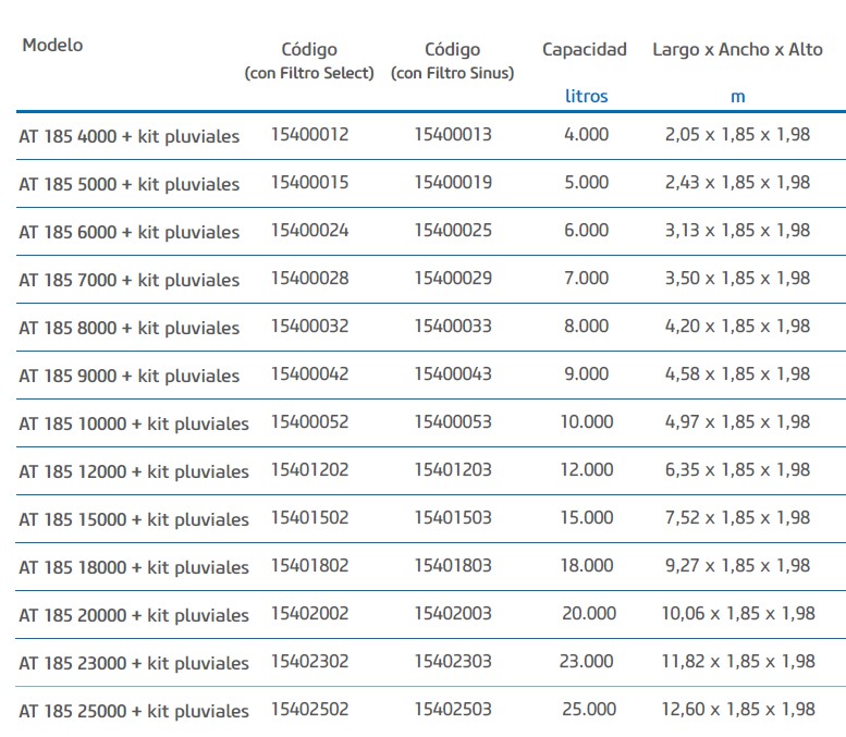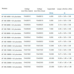 El kit de pluviales incluye: Filtro Select, Difusor de entrada, Flotador Aspiración Bomba y Sifón de Evacuación.
